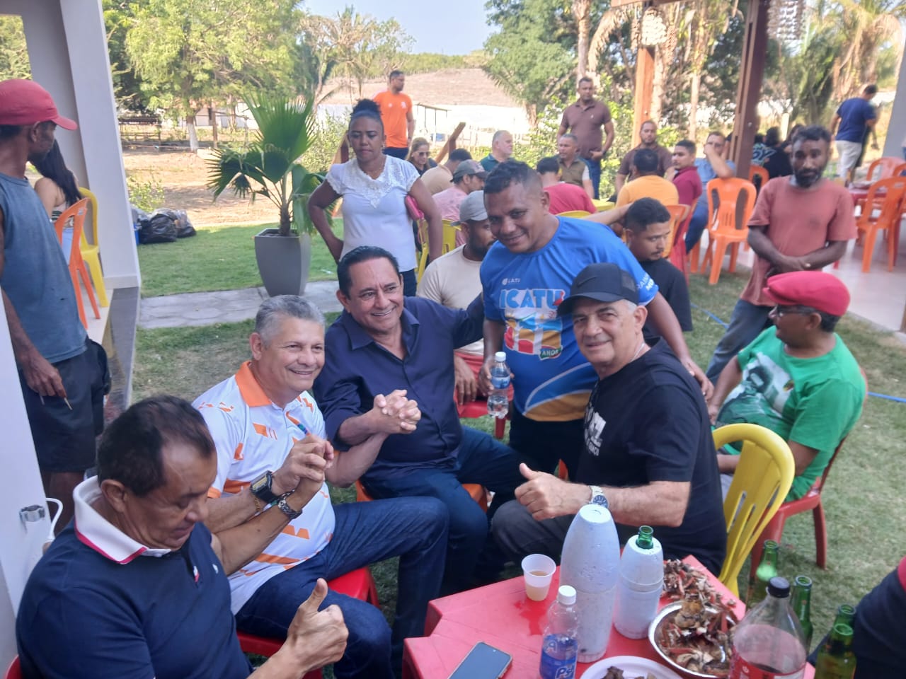 O prefeito Walace Azevedo, ao lado do vice-prefeito Carlos Pereira, da vereadora Paulinha Matos, do secretário de Estado do Esporte, Celcinho, e do deputado federal Aluísio Mendes, conduziu as comemorações com espírito de união e agradecimento.